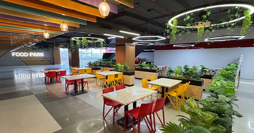 INTERIUS presents a unique food court at Mantri Mall, Bangalore, blending modern design with functionality. Every detail has been crafted to encourage moments of relaxation and inspiration, making it the ideal spot for both casual meetings and leisure time.
